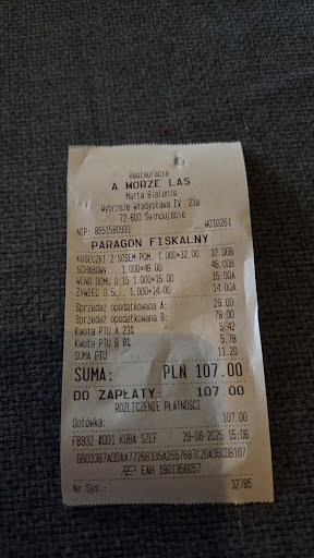 Read moreNa niedzielny obiadek wybraliśmy się z chłopakiem do „a morze las”. I absolutnie nie żałujemy! Na przystawkę wybraliśmy zupki - rybną i żurek. Zupka rybna aromatyczna i pikantna, dużo mięsa i warzyw. Żurek kwaśny, bardzo domowy, z sadzonym jajem z płynnym żółtkiem. Danie główne czyli udziec z jelenia kluseczkami i karmelizowaną gruszką okazało się niesamowitym połączeniem różnych smaków - wszystko uzupełnione sosem podgrzybkowym. Grzyby nie były „rozlazłe”, rozgotowane, pasowały do dania. Sos jedynie mógłby być troszkę bardziej doprawiony. Niemniej jednak był dobry. Kolejna pozycja to dorsz podany na plackach ziemniaczanych. Tu również mega zaskoczenie, ryba naprawdę w punkt wysmażona, chrupiąca skórka. Placków ziemniaczanych obawiałam się najbardziej, ale chyba mogę stwierdzić że były to najlepsze placki jakie jadłam w knajpie - chrupkie, z bardzo smacznych ziemniaków. Danie dopełnione zostało również sosem grzybowym. Jesteśmy bardzo zadowoleni z naszej wizyty w „a morze las”, pomysł na restauracje bardzo ciekawy i nieoczywisty, obsługa na najwyższym poziomie, z pasją opowiada o daniach, potrafi doradzić. Porcje są naprawdę duże, a ceny jak na Świnoujście bardzo przystępne i niewygórowane. Na pewno przy następnej wizycie w Świnoujściu z przyjemnością odwiedzimy to miejsce z nadzieją na kolejne doznania kulinarne. A nowym właścicielom restauracji życzymy samych sukcesów i...