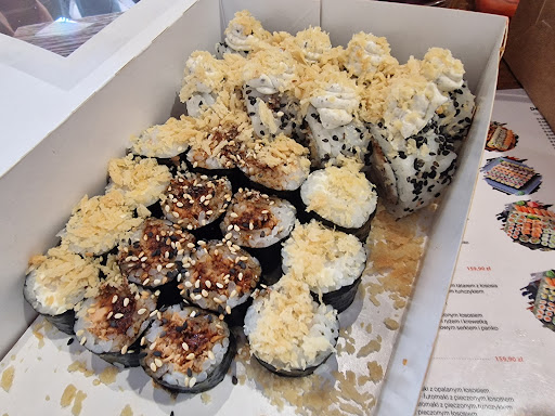 Read moreW lokalu strasznie śmierdziało byłem tylko odebrać jedzenie ale w nos i tak kół strasznie mocny zapach który nie był przyjemny sushi jedno było dobre drugie tragiczne bez smaku inne było tak suche że ciężko się jadło sosy zabijały cały smak bo kawałki sushi były nim pokryte paluszki krabowe najniższej jakości inne kawałki od samego dotknięcia rozwalało się gdzie nie było możliwe zjedzenie go całego na raz a walka z nim żeby zjeść gratisowe tzw rolki które miały być nie zostały dodane a pan po zadzwonieniu i spytaniu upierał się że są tylko pewnie ja nie widzę dodatkowo sam pan mówił jakby tam był za karę i sam do siebie przez co musiałem się wręcz skupić żeby zrozumieć co do mnie mówi dodatkowo zestaw który zamówiłem nie posiadał wszystkich rodzajów sushi jak miało być ogólnie nie polecam lepiej zapłacić trochę więcej ale zjeść naprawdę dobre w koku sushi lub project sushi w porównaniu do tego to nie jest najgorzej ale dobrze też nie jest dlatego ja więcej tam nie zamówię jeśli ktoś się zastanawia by zamówić pierwszy...