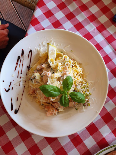 Read moreZamowilismy krem z pomidorow, salatke grecka, carbonare, bolonese i pizze salami. Krem i salatka na 5. Porcja raczej z mniejszych, ale smakowo dobre. Bolonese zjadliwe, chociaz nieprzyprawione i makaron rozgotowany, wielkosc porcji rowniez nie powala. Pizza przypalona. Oliwa bez smaku. Chcac opisac carbonare nie znajduje zadnego slowa, ktore mogloby jakkolwiek ja dobrze opisac. Makaron rozgotowany, boczek byl jednym wielkim surowym tluszczem, przypraw calkowity brak. Nie dalo sie zjesc. Nigdy nie zostawiamy jedzenia, ale balismy sie rewolucji zoladkowych. Ceny zbyt wysokie do jakosci. Szukaliśmy dobrej włoskiej knajpy nastawionej na jakosc produktow i kazdego klienta - takze tego, placacego w zlotowkach a nie tylko w euro. Na obsluge czekalismy dlugo mimo iz lokal nie byl zapelniony nawet w 50%. Przy stoliku obok siedzial natomiast jeden z kelnerow, ktory odbieral ostentatycyjnie telefony od zalogi restauracji i wyraznie podkreslal, ze w danym momencie nie pracuje gdyz je obiad ze znajomymi. Od znajomych natomiast sam zebral zamowienia i dostarczyl napoje. Ostatecznia obslugiwala nas bardzo mila Pani Ukrainka. Dodatkowy minus za wylacznie jedna toalete na caly lokal + ogrodek. Malo komfortowe siedzi sie przy stoliku za ktorym wiecznie ustawia sie kolejka do toalety. Skusila nas dobra ocena na google i menu - zdecydowanie jednak tu nie wrocimy i nie bedziemy polecac...