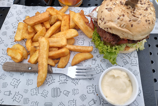 Jedzenie bardzo złej jakości. Mięso nie tylko było nieświeże ale również niesmaczne. Nie można ale wręcz nie należy nazywać burgerem czegoś co burgera nie przypomina i nie smakuje jak burger. Dużo podróżuję i bywam w wielu restauracjach. To obecnie najsłabszy lokal w jakim miałem to nieszczęście być od wielu lat :( Nic nie zapowiadało katastrofy, która miała się wkrótce wydarzyć. Początek naszej wizyty był jak najbardziej udany. Zamówiliśmy herbatę i sok pomarańczowy i dość szybko je otrzymaliśmy. Później było tylko gorzej. Bardzo długo oczekiwaliśmy na burgery z frytkami , co najmniej pół godziny i w końcu po dopitej, zimnej już herbacie niestety, przyszło nasze zamówienie. Bułka jak z zamrażarki, bardziej namoczona niż upieczona. Sos do burgera bardzo kiepski, tłusty, niezbyt smaczny. Byliśmy już tak głodni i zmęczeni po wyczerpującej podróży, że pomału to zjedliśmy ale niesmak został. Zgłosiłem swoje uwagi kelnerce, która wezwała panią manager. Wyjaśniłem grzecznie, że burgery są bardzo złej jakości, z resztą widać na zdjęciach jak wyglądają bułki. Mięso również nie było pierwszej świeżości. Nie usłyszałem od Pani manager żadnego słowa przepraszam ani żadnej choćby najmniejszej chęci ze strony pani manager żeby w jakiś sposób w najmniejszym stopniu zrekompensować nam tak źle przygotowane dania. Usłyszałem jedynie że jest wielu klientów a mięso jest świeże z wczoraj. Pani była niekompetentna, w ogóle nie słuchała moich uwag, nie starała się w żaden sposób załagodzić sytuacji. Przyniosła szybko rachunek, który oczywiście zapłaciliśmy i bardzo niepocieszeni wyszliśmy z lokalu. Nigdy jeszcze tak złej recenzji nikomu nie wystawiłem bo nigdy przez tyle lat nie miałem tak przykrej sytuacji. Zdecydowanie więc nie mogę polecić tego...