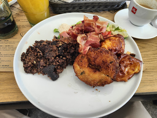 Read moreWith their reputation for breads, it is no surprise to find the breakfast omelette (with prosciutto, tomato and pesto) at Breadnia nestled within a large fresh croissant. With lots of street tables and a large rambling interior, this bistro/bar can handle the crowds and is understandably popular. The wait staff were efficient and multilingual - yes, English is spoken here if you need it. Fitting its baking point-of-difference, every cup of coffee comes with a small freshly-baked cookie or wafer. The breakfast menu is vast, with more than a dozen options. The street tables have umbrellas if you need the shade and the Bistro faces West (it's on the East side of Piotrkowska), so in Summer, early morning (it's one of the few places open by 9 am) you have natural shade and as the sun comes round you can enjoy its warm while sipping great coffee. Don't neglect to look up at the ornate and eclectic Secessionist building itself, which has been beautifully renovated, and houses the Samorządowe Kolegium Odwoławcze w Łodzi (Local Government Appeal...