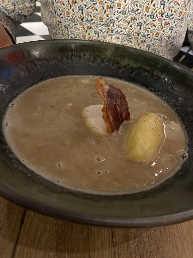 Lokalizacja, jak i wystrój, bardzo na plus. W damskiej toalecie znajduje się koszyczek z artykułami "w razie potrzeby", a także znajduje się tam np. krem do rąk czy antyperspirant. Lokal rzeczywiście może nie być dobrze ogrzewany (jak ktoś wspomniał w innej opinii), ale nie było też przesadnie zimno. Szkoda, że nie ma wieszaków na kurtki/płaszcze i trzeba okrycia wieszać na krzesłach, które są niskie i przez to (np. płaszcz) szoruje po podłodze.