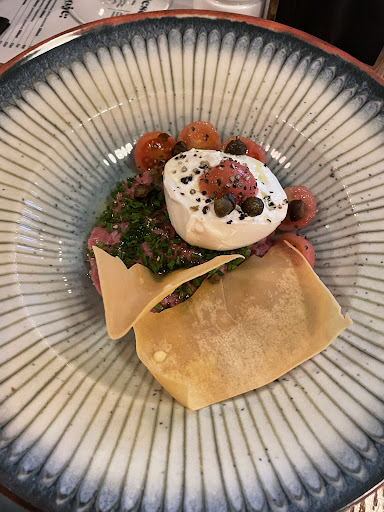 Na wstępnie zamówiłem krem z białych warzyw , byłem ciekawy tego kimchi i to był błąd .Sama zupa była świetna jak i bekon ale kimchi widać było że nie leżakowało zbyt długo a w pełnym momencie miałem uczucie że zamówiłem kimchi w sosie z białych warzyw a nie zupę z dodatkiem kimchi… zrozumiałbym te przełamanie smaku i dać te parę pasków dla fajnego zróżnicowana smaku a tu dostałem pełno kimchi ze czułem tylko smaku imbiru a nie kremu . Żeberka bbq są całkiem dobre i cenię że dość duża porcje ale to takie 7.5/10 jeśli chodzi o smak , myślę że warto było by pomyśleć o dłuższym czasie w marynacie lub samej dłuższej obróbce termicznej z minimalnie mniejsza temperatura lub to i to dla miększej struktury dania aby te mięso faktycznie rozpływało się w ustach a nie odrywało widelcem raz łatwiej a raz trudniej . Żeberka dobre ale bez „wow” Teraz główną gwiazdą wieczoru czyli TATAR!!!! Raz że w smaku był okropny to trafiłem w nim ścięgna w 4/5 kęsach których nie byłem wstanie nawet pogryźć mimo starań . Musiałem ratować się chusteczką i zwyczajnie wypluwać to . Miałem pecha , możliwe bo moja przyjaciółka nie miała ścięgien lecz też przyznana że smak jak i wersja podania jest okropna i razem Stwierdziliśmy że lepiej było by kupić gotowego Tatara w biedronce mimo dużo słabszej jakości mięsa . Zostałem totalnie obrzydzony do Tatara na długo. Zgłosiłem to bardzo miłej kelnerce i nie była zaskoczona że tatar nam nie smakuje bo już taki negatywny feedback dostają a że miałem tyle ścięgien było brakiem komentarza mimo że widziała że chusteczka jest pełna mięsa . Jestem bardzo zaskoczony że mimo negatywnego feedbacku takie coś dalej jest w karcie , czy to warte te 40 zł aby ktoś następny się sparzył i następny ??? Czy nie lepiej powiedzieć że Tatara dziś nie mamy ? Lub się skończył ? nie wiem jakim cudem taka wersja Tatara przeszła testy u was wewnętrznie . Szef kuchni wyszedł z taką propozycją więc manager i właściciel musieli to zaakceptować chyba że testujecie to na żywym organizmie czyli na klientach….Szok ! Jedynie burger i pizza uratował ten wieczór.Naprawdę smaczny , fajna bułka , mięso i dodatki . Pizza też super ale wydaje mi się że robiona lekko zbyt wysokiej temperaturze( tego typu pizzy najlepsza 390/420c i czas to dosłownie chwila ) co wskazują ranty a tak to perfekto . Podsumowując knajpa Fajna ale zdarzają się dość często wpadki a niektóre dania potrzebują lekkich szlifów. Rynek Bialski może nie jest zbyt wymagające a właściciel może spoczywa na...