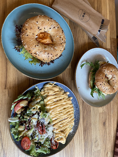 The cons: The prices aren't small. But the biggest letdown was the food. Maybe it just wasn't to my taste, but it was plain and the flavors weren't combined well. We had a beef bagel and a salmon bagel. The salmon was overcomplicated, and the cream cheese wasn't to our liking. The beef bagel was just... Weird. Maybe someone with a very delicate palate would appreciate it, but for me it was unseasoned long cooked beef (like from a soup base), some veggies and a sweet dressing. I really wish it was more flavorful, maybe even a bit spicy? If you wanna go the sweet route, why not choose bbq for the pulled beef?