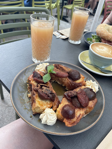 Went for saturday breakfast and ordered bagel with beef and omlette with cappucino on oat milk. The restaurant was full, there were 3 persons doing service. One of the waitresses was aggressive just because there was some language misunderstanding in the beginning while we asked if we should sit outside and order or order at cashier then sit down. I was not attentive and didnt notice that there will be ham in omlette as well, when it arrived i asked if there could be chance to replace/change omlette to veg one (tho i know its my inattentiveness ofc) the same waitress said: “Do you wanna see menu again?” Felt like guilty preschool kid in front of strict math teacher while making error in problem :) Should i do so in a cafe with 5 stars - another question :) After a while cappucino arrived with regular milk, they were nice and changes it to oat milk immediately. I hope this all was just one day bad luck with a cafe in our case :) however, if the cafe is fully occupied to avoid wrong orders - maybe one can write down/note orders and be a bit extra kind...