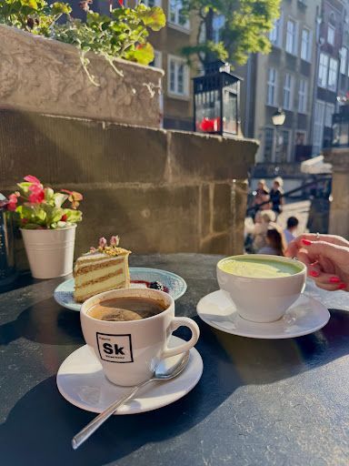 Tired and stressed, this was the first place we spotted, but I'm glad we went there (this was back in May, decided to review now as I remembered how good they were)! Very good coffee and varied, fun cocktails. Price wise, they were cheaper than I expected for that area! I really, really enjoyed coming here on days out in Gdańsk and sitting outside for a while, looking out at the beautiful street. I just wanted a coffee and a break and ended up returning here as we enjoyed it so much. The staff were friendly and kind too, despite me being cheeky and trying to eat food I brought myself while having my coffee lol. I'll buy a cake next time, I promise! The lady on the bar was very patient as my English boyfriend tried to practice and place his drink order in Polish. As far as I saw, the lady also speaks and understands English well, English speaking tourists will be able to order easily here. They brought an ashtray out for us when they noticed us rolling cigarettes. Definitely recommended, quaint little cafe with lovely atmosphere, reasonable prices and great view of a beautiful, popular street in Old...
