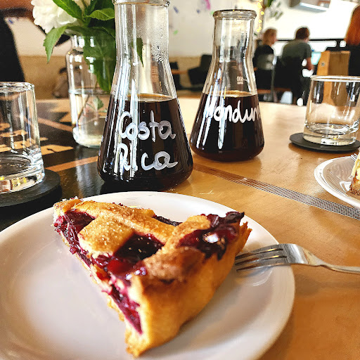 Read moreToday is our second time at this cafe. The ambience is lovely and the cakes are excellent. We had their cherry pie and plum cheese cake with two single origin (costa rica/honduras) chemex method coffees. The service ladies are very friendly and accommodating, yesterday there was a rush for seats so we were going to settle for balancing plates and glassware on the steps (they provide cushions on the staircase leading up to the cafe), but surprisingly the lady in charge offered us a table and got a grabby couple to scoot instead. That sealed the deal for our second trip (that and the fact that the last slice of cherry pie floated past us at 4pm....) The BGM is a very eclectic mix of 60s to 80s music - not too loud but a great mood setter and they have some really interesting hand drawn paper/posters decorating the walls. Lovely place - I'd highly, highly recommend this place to anyone...