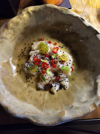 Read moreJust phenomenal! Where do you start - the Michelin style food? The atmosphere? The location? No, let's start by mentioning one of the best waitresses I have ever come across - unfortunately I don't remember name, but her chatter, her joy at what she does and her knowledge of the food and wine was second to none. She made our evening. The restaurant is tucked away on the terrace above one of the many amber shops, blink and you miss it, but that's what made it perfect as you get away from the main drag along the river. The food was incredible, we had scallop ceviche, beef, mahi-mahi and the amazing desert of salted caramel cream and meringue. They only offer one but the taste sensation was worth it! Our waitress paired our wines perfectly, we finished with the herby-digestif and left with huge smiles on our faces and the perfect amount of food and drink for a fabulous evening....