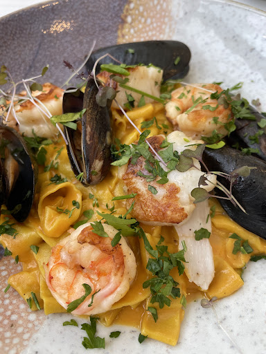 Read moreHad a delightful lunch here yesterday - a fish soup with a perfectly cooked mix of seafood served in a clear broth with a Thai accent, then a whole crab with a spicy black ink pasta - the crab was difficult to eat, but the friendly and engaged staff provided all of the necessary weapons-utensils. A short, but well chosen wine list - we ordered a terrific bottle of Primitivo. And the drinks guy knew that the Chopin vodka appertif was best served from a bottle chilled in the freezer (and never a room temperature). What was especially appealing is that our two waiters (without any loss of efficiency) made clear that we were welcome to linger as long as we desired and brought surprise little treats from time to time to encourage us to stay. I recommend sitting on the sun-exposed porch - the interior, while nicely appointed,...