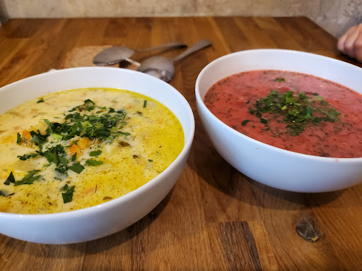 Read moreWe stumbled upon this soup spot by chance and were really impressed. I had a soup with mixed mushrooms and noodles, while my friend went for the beetroot and raspberry soup. Both were absolutely delicious. Even though we arrived quite early (around 11 a.m.), the place was already busy, which speaks for itself. The selection of soups was large and varied, making it hard to choose.