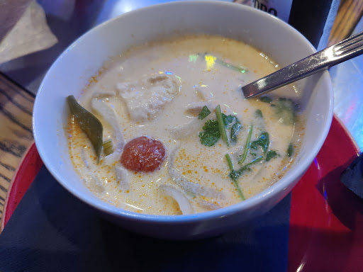 Read moreHad a Tom Kha and the Chili Basil, yet somehow the Tom Kha was more "spicy" while it shouldn't be. I guess the chili was forgotten in the chili basil. It was just sweet and there was literally no spicyness to be found in it at all. The chicken I ordered as an addition to the Chili Basil was the worst I've eaten in any restaurant, as it was very chewy and dry, and had to use my drink to flush it (not exaggerating). The green curry dish (also not spicy at all) did have normal prepared chicken in it, so I don't know what happened here. Unfortunately I did not order that one.