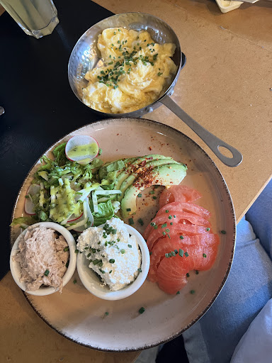 The brioche sandwiches and breakfast plates are to die for, the place is clean inside and out. Kids and dogs friendly (dogs get a eater bowl and some doggie treats), the staff is warm, friendly and smiling.