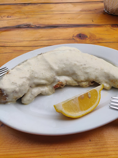 Read moreHm... w internecie miejsce ma opinie pozytywne i wybór swój na tym właśnie oparłam. Rozczarowanie ogromne, głównie fatalną organizacją. Na 12 stolików, które pomieścić mogą nawet do 6 osób jest jedna osoba. Chłopak jest turbo szybki ale nawet to nie wystarcza. To on zajmuje się czyszczeniem i dezynfekcją stolików, on zbiera brudne naczynia i wynosi do kuchni, on przyjmuje zamówienia, on przynosi do stolików zamówione potrawy i również on przyjmuje płatności. O tym, że w międzyczasie wrzuca na patelnię ryby a potem nakłada je na talerze nie wspomnę. Niestety wszystko to zabiera czas i przekłada się na jakość serwowanych dań. Na swoje zamówienie oczekiwaliśmy ponad 40 minut. W efekcie otrzymaliśmy bigos podgrzany w mikrofali, co już samo w sobie jest zbrodnią oraz dwie przypalone ryby wytaplane w sosie chrzanowym więc dopiero po organoleptycznej próbie wykazały gorzki smak spalenizny. Rybska przesmażone, suche jak wiór i gorzkie. Ani śladu ziół masła czy cytryny. Drodzy domorośli gastronomicy trochę więcej wiedzy praktycznej bo w tej chwili tworzycie nie restaurację a nieboską komedię. A dwie gwiazdki za szybkość...