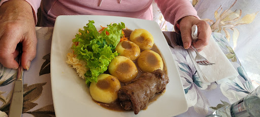 Absolut lecker, bei dem Anblick der Gerichte lief mir wirklich das Wasser im Mund zusammen, auch das Personal ist sehr freundlich und spricht deutsch. Die Einrichtung ist eher rustikal gehalten mit Holzstützbalken und Hirschgeweih Lampen an der Decke, dennoch ist es dort sehr gemütlich. Was ich total schön fand, ist der Park mit Sitzgelegenheiten zum draußen essen. Der kleine Springbrunnen und wie liebevoll und gemütlich das dort hergerichtet war. Wir sind zwar nur durch gelaufen, weil es leider zu windig war um draußen zu sitzen, aber das hat schon gereicht um zu sagen, dass ich wieder komme.