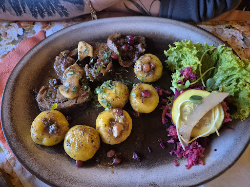 Read moreNajwiększym atutem Dziupli jest dbałość o jakość i świeżość składników, które są podstawą ich wyśmienitych dań. Każdy kęs to dowód na to, że kucharze i kucharki wkładają serce i pasję w wydobycie głębokiego smaku, jaki znamy z dawnych staropolskich stołów. Szczególnie warto podkreślić kunszt, z jakim przygotowywane były potrawy z dziczyzny. Mięso było perfekcyjnie doprawione, miękkie i soczyste, a sposób przyrządzenia pozwał w pełni docenić jego naturalny, niepowtarzalny smak. Kompozycje smakowe były harmonijne, znakomicie zbalansowane. Próbowaliśmy Tatara z Łosia, pierogów z gęsiną, smalec, sarny w sosie ziolowo-śmietanowym, dzika w ziołach i winie, piersi z gęsiny, szarlotki z mąki żytniej i ciasta z jagodami z mąki orkiszowej. WSZYSTKO IDEALNIE PRZEPYSZNE. Do tego napar zimowy z idealną domową konfiturą z malin. Każde z wytrawnych dań uzupełniały idealnie dobrane dodatki, takie jak NIESAMOWITY chleb żytni na zakwasie, domowe kluski, świeże sezonowe warzywa czy kiszonki, które przypominają o tradycyjnych metodach kuchni naszych przodków.