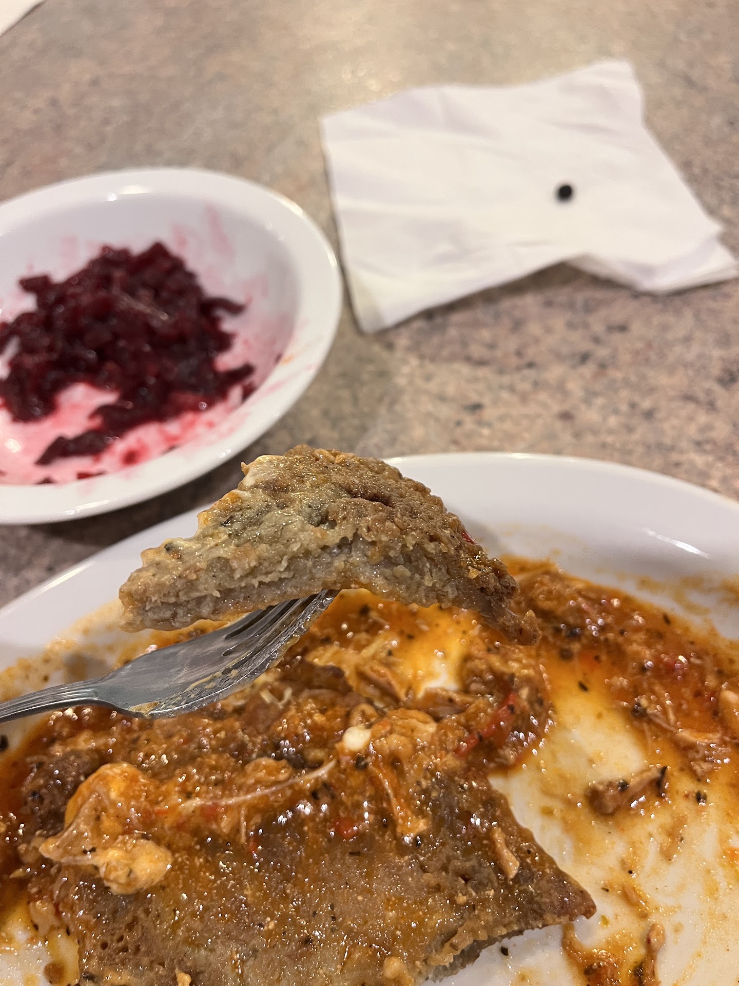 Nie polecam w tym miejscu placka po węgiersku. Zamawiałem go dwa razy. Pierwszym razem był średni, ale tym razem to był masakryczny 😡 placek niedosmażony, siny. Niestety ale zdjęcie nie oddaje stanu faktycznego. Reszta dań które miałem okazje tu jest była dobra.