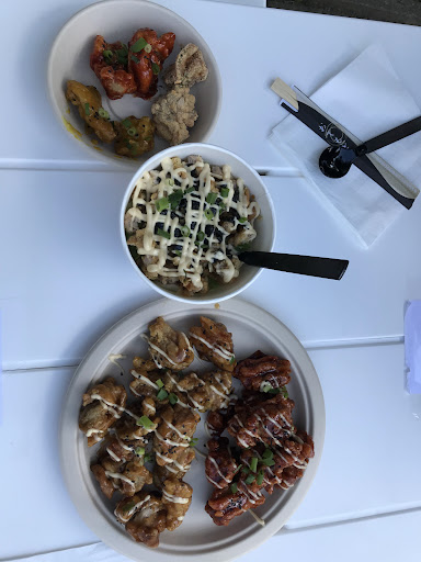 Read moreNie mam zdjęć jedzenia, bo zawsze bierzemy na wynos i znika zbyt szybko, a spróbowaliśmy chyba wszystkiego z menu i nigdy nie byliśmy zawiedzeni. Jedzenie jest troszke drogie ale przepyszne i naprawdę wartę tej ceny. Zawsze kiedy jesteśmy w okolicy Wrocławia musimy się zatrzymać, nawet jak nie czujemy obecnie głodu, bo wiem, że później będziemy żałować, że tego nie zrobiliśmy. Moim faworytem jest kurczak SOY, a narzeczonego kurczak CHEESE. Obydwoje uwielbiamy poszerzać te zestawy o dodatkowe kluseczki DOK. Kurczak soczysty, pełen smaku, panierka chrupiąca i mocno doprawiona, a sosy obłędne. Wszystko ze sobą genialnie współgra. Najlepiej smakuje na ciepło. Polecam każdemu spróbować, bo serio warto. Sama zawsze próbuje nowości i razem cieszymy się, że są one wprowadzane. Kanapki obłędnie smaczne! czekamy na mięsną wersje pierożków. Obsługa zawsze uśmiechnięta i miła. Lokal bardzo utrzymany w klimacie korei, puszczane azjatyckiej muzyki dodaje uroku. Dbają o czystość i dobry wygląd. Właściciele naprawdę wiedzą co robić i robią to znakomicie. Trzymamy kciuki za dalsze sukcesy restauracji i mamy nadzieję, że sieć rozwinie się sięgając Poznania, bo bardzo nam tam tych...