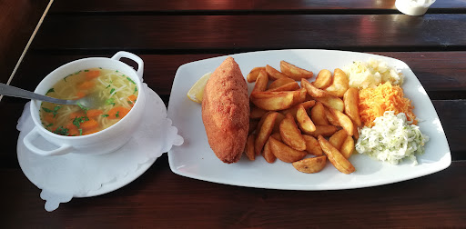Trafiliśmy do tego baru zachęceni opiniami z internetu. Jedzenie a i ceny jak na położenie baru (atrakcyjne) są przyzwoite. Spore porcje. Zupa rybna znakomita. Nie.przypominała smakiem znanego smaku paprykarza szczecińskiego czy strogonowa, a miała swój wyjątkowy smak. Nawet moja 9lat córka zjadła z.wielkim apetytem. Nie była ostra co tu akurat na wielki plus. Filety dobrze usmażone i bez ociekającego tłuszczu. Czuć było że to wszystko jest świeże. Ryba jest świeża a nie z mrożonek. Nie oszukują że wszystkie ryby są z kutra bo obecnie jest zakaz łowienia np. dorsza. Jasno i klarownie przekazują informacje co mają z kutra. Hitem jest surówka z kapustki świeżej z koperkiem - to naprawdę świetnie dobrane i zrównoważone składniki. Ludzie byli zadowoleni to co dostawali i im smakowało. Nawet dzieciaki wcinały z dużym apetytem.