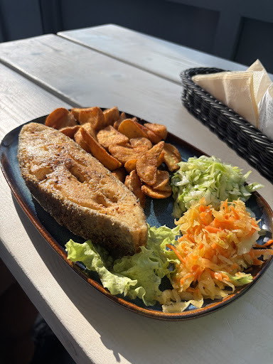 Jedzenie smaczne ryby dobrze doprawione, delikatne, zapiekane ziemniaki chrupiące. Niestety surówki to najsłabszy punkt kapusta kiszona była gorzka, jakby nie do końca świeża, z młodej kapusty już znacznie lepsza. Porcje ok, ale mimo to ja osobiście wyszłam troszkę głodna. Zupa rybna rosół z kilkoma małymi kawałkami ryby. Dobra, ale bez większego wow, dodatkowo kelner zapomniał dostarczyć pieczywo od razu z zupą. Otrzymaliśmy je w połowie zjedzonej zupy. Szkoda też, że nie ma domowej lemoniady dostępne tylko napoje typu Fanta, soki i piwo.
