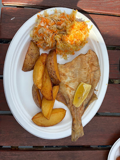 Koszmarne surówki: kapusta nie kiszona, tylko ew. kwaszona (z octem) i nie wiadomo po co jest w niej też kukurydza i papryka marynowana... Mam podejrzenie, że są to surówki kupne z jakiegoś słoika. Ryba (dorsz) powiedzmy ok, ale na granicy niedosmażenia. Najlepsze były frytki. Pierogi z farszem z ryb mają mało wyrazisty rybny smak... Mam wrażenie, że w farszu jest jeszcze coś oprócz ryb - kasza jakaś może?! UWAGA - pierogi z RYBĄ polewane są skwarkami ze ŚWINI - boski zamysł... [ironia] Nie są to pierogi z łososiem, raczej jakieś inne ryby, ale pani za barem nie ma pojęcia, co jest w tym farszu. Rolmops podawany jest bez masła i chleba.... Dania podawane na papierowych tackach, w cenach takich jak konkurencja obok podaje na talerzach... Pachnie PRL-em i jakąś taką atmosferą niestarania...
