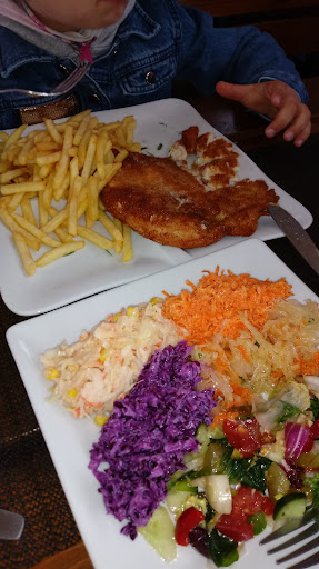 Read moreJedzenie w porządku, bardzo dobra świeża surówka, dorsz smażony też. Zamówiłam tez grillowaną pierś z kurczaka, ale to raczej był smażony kotlet, jednak mężowi i córce smakowało, to najważniejsze. Zdziwiła mnie tylko Pani z obsługi, kiedy zapytałam o to, w jakiej formie jest 'panierowany kurczak', nie wiedziałam, czy to pierś w formie kotleta, czy może kawałek kurczaka w panierce, Pani odpowiedziała: 'no w formie panierowanego kurczaka'. 🤦♀️ Okazało się kotletem, ale smakowało, więc najważniejsze. Klimat zwykłej knajpki, bez szczególnego widoku, jedzenie trzeba odebrać, potem odnieść talerze, ale to tez wpływa na fakt, ze jest taniej niż w innych knajpach, więc na plus. Kompot (nie polecam) x2, zestaw obiadowy, zestaw dla dziecka, smażony dorsz z większymi frytkami, surówką, zamówienie kosztowało 110 zl, więc super jak na...