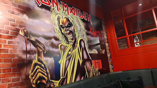 Nigdy w życiu nie jadłem tak złego burgera. Dotychczas nie zdarzyło mi się zwrócić jedzenia do kuchni, nawet gdy było słabe ale dało się je jeszcze zjeść. Tym razem bałem sie, że jeśli dokończę to będę tego później żałował. Bułka była spalona, więc rozpadła się w rękach. Ale najgorsze było mięso. Po pierwsze, było źle uformowane więc po usmażeniu skurczyło się (co jest oczywiście normalne) i wypełniało nawet nie połowę bułki. Po drugie, mięso miało konsystencje kotleta mielonego, w środku było wysuszone, mdłe i kompletnie bez smaku. Sos do burgera to po prostu majonez wymieszany z ketchupem, więc też rozczarowujące. Reszta nie zwróciła mojej uwagi. Ogółem widać, że osoba która przygotowywała mojego burgera nie miała pojęcia co robi. Stąd po propozycji wymiany burgera na nowego wolałem odmówić, żeby uniknąć kolejnego rozczarowania. Byliśmy tam zaraz po otwarciu tego dnia, pewnie jako pierwsi klienci, więc nie da się trgo wytłumaczyć zbyt dużym ruchem. Co do klimatu, to tutaj też jest nędznie. Wystrój jest bardzo fajny, na ścianach plakaty Iron Maiden, automaty do gier z nazwami zespołów. Ogółem wystrój sugeruje, że usłyszysz tu heavy metal/ hard rock. Natomiast w lokalu króluje radio eska i "hity", których spodziewałbym się raczej na wiejskiej imprezie w remizie. Obsługa była ok, chyba jedyny dobry punkt tego miejsca.
