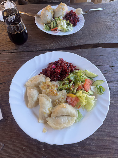 No cóż. Miejsce wyglądało całkiem ok i sprawdzaliśmy opinie przed wizytą ale postanowiliśmy mimo to wjechać i spróbować kartaczy. Niestety stoliki na zewnątrz brudne a popielniczka pełna kiepów nie zachęcała. Ale to pierdoły przecież najważniejszy jest smak. Same danie czyli kartacze i pierogi są z tym samym kiepskim mięsnym farszem który nie ma ani pieprzu ani soli. Trzymam kciuki w przyszłości może wrócimy ale trzeba poprawić przede wszystkim smak dań