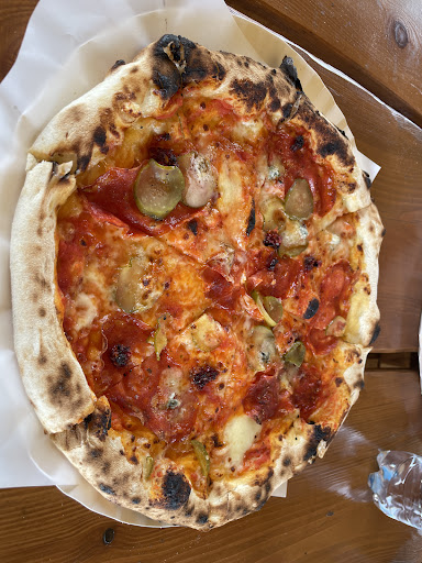 Tak szczerze pierwsze wrażenie mieszane, pola, mała budka, kilka stolików, brak możliwości aby usiąść w środku, miejsca tylko na dworze. Natomiast smak rekompensuje wszystko, bardzo dobra pizza, jak Włoska, kilka rodzaju oliw do wyboru na stoliku (truflowa, cytrynowa i pikantna) (możliwe że na innych stolikach były inne, ale dodajcie proszę czosnkową i zwykłą a będzie 100/10) polecam warto i mam nadzieję że się rozrośniecie! Prawdziwa pizza a nie jakieś barowe...