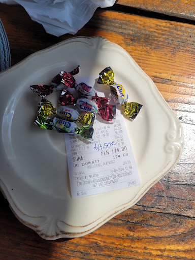 Read moreMieliśmy okazje zatrzymać się tam i zjeść rodzinny obiad. Pierwsze co i minus to spory ruch przed restauracją i brak wolnych miejsc parkingowych. Owszem można stanąć na parkingu obok płatnym chyba 3,5 euro - no dobra. Menu pod niemieckiego klienta, ale po polsku jest też przetłumaczone. Ceny też są niemieckie, także proszę się przygotować że "tanio" nie jest (zdjecie). Fajnie ze kelnerka odrazu informuje o braku możliwości płacenia kartą, ale można w PLN lub w €. Tyle że mają własny kurs nie korzystny dla klienta - my wracając do Niemiec mieliśmy euro i nim zapłaciliśmy za rachunek (zdjecie). Klimat fajny jak i toalety, obsługa też i czystość. Co do jedzenia to było naprawdę smaczne i warte swojej ceny. Poza rosołem, który kury nie widział na oczy oraz frytkami które w tej cenie powinny być robione na miejscu a były gotowe z torebki. Ogólnie polecam, porcje były odpowiednie i smaczne, wyruszyliśmy w dalszą drogę z...