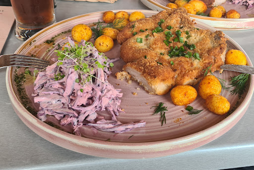 Read moreZamówiony schabowy z kością, ziemniaczkami i surówką przeszedł wszelkie oczekiwania. Schab dobrze rozbity na idealną grubość, usmażony w punkt, był idealnie dopieczony w środku miekki i soczysty, panierka nieprzesmażona, nietłusta, trzymała się schabu do ostatniego kawałeczka. Obsługa bardzo miła, serwis zamowienia na wysokim poziomie. Szef kuchni zasługuje na gwiazdkę Michelin za przyrządzane potrawy, poprosiłem o inna surówkę, też nie było problemu dla Szefa kuchni żeby stworzyć mi surówkę z czerwonej kapusty z dodatkiem majonezu, która była tak smaczna, że osobiście dodał bym ją do menu jako pozycję do wyboru. Od mojej wizyty 08.04.2024 r. minął prawie miesiąc, zjadłem w tym czasie w innych lokalach kilka schabowych, ale żaden nie mógł się równać do Waszego, podnieśliście poprzeczkę wysoko, wszystkim restauracjom. Polecam również piwko, którego nazwy nie pamiętam ale było z nutą cherry, jeśli możecie to podajcie nazwę, bo było bardzo dobre. Wrócę tutaj na pewno i mam nadzieję, że dalej będzie tak smacznie...