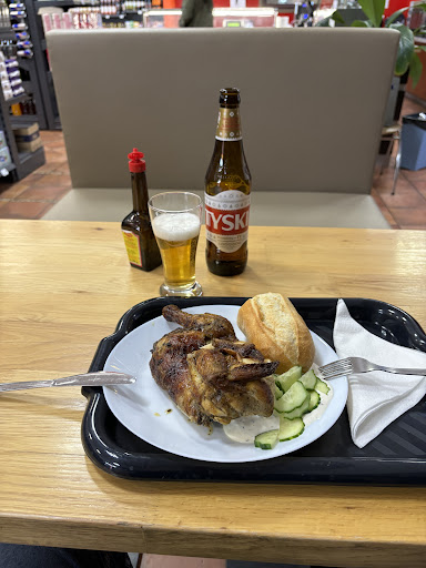 Snelle lunch gegeten, op aanrader van de vrouw achter de keuken de halve kip met een broodje en knoflooksaus genomen...