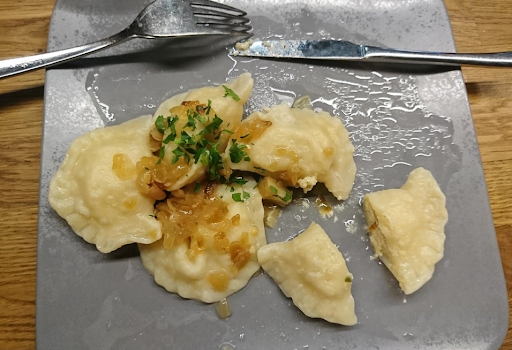 The waiter took the menu out of my hands (without asking if I still needed it), repeated something in Polish and said "ok" and left. Well, I stayed to wait for my order. They bring me potato pancakes with mushrooms. I think maybe I'm stupid and it's a schnitzel, I try it. I realise there's no meat and it's just pancakes.
