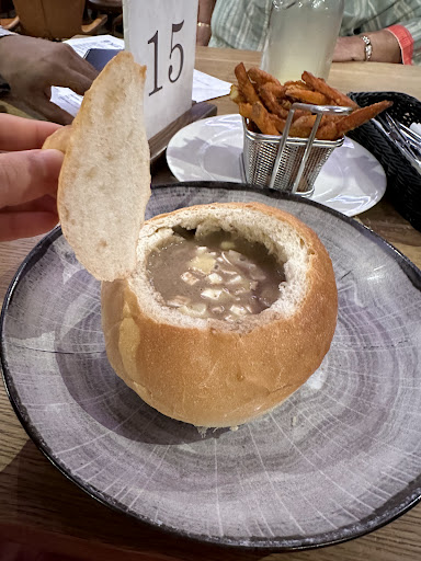 But the real failure was in the service - or lack thereof. Despite waiting for ten minutes, not a single staff member acknowledged us. When we finally did see someone, he tried to serve us a soup we hadn’t ordered. We informed him that we hadn’t even been able to order yet, and he promptly disappeared, never to return. That was the third strike. With no hope of being served and no improvement in sight, we hot-footed it out of there to find somewhere better. (Incidentally, we found 'BroHouse' five minutes away, and I can recommend it heartily.)