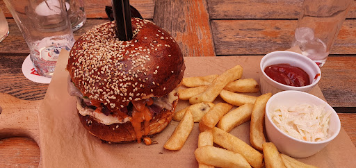 Byliśmy w sobotę wieczorem, lokal miał chyba 100% obłożenie (zdaje się że przyjechała policja wlepić za to mandat) i obsługa kręciła się jak dzieci we mgle. Zamówiliśmy po piwku i wyczekiwaliśmy jedzenia. Ja zamówiłam burgera, mój narzeczony steka. Podczas składania zamówienia podkreśliliśmy żeby burger był bez cebuli ze względu na alergię. Trochę musieliśmy poczekać na jedzenie ale było to dla nas zrozumiałe bo był w knajpie dziki tłum. W oczekiwaniu podeszła do nas kelnerka z zapytaniem "czy coś chcemy zamówić" ale nie wzięła pustych butelek po piwie. W międzyczasie ilość szklanek i butelek rosła ale nikt ich nie zabierał 🤷🏻♀️ wreszcie nadeszła pora jedzenia. Kiedy zjadłam frytki i postanowilam się zabrać za burgera, w tej samej chwili podeszła kelnerka i poinformowała mnie ze to inny burger niż zamawiałam, potem to samo powiedział mi kelner który nas obsługiwał ale zapewnił ze nie ma cebuli. No coz, dziwnie mi to pachniało i niestety po oględzinach znalazłam tam cebulę. Kotlet twardy jak kamień, całość się rozpadała, pomidory jakby zrywane w styczniu. Daję 2* za możliwość zamówienia innego piwa niż warka, chociaz z tych kilku pozycji nie było 2 o które prosiliśmy. Stek był gumowaty. Wiem że raczej się tam już nie wybiorę będąc...