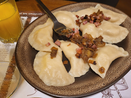 Read moreLiterally the best Pierogi Shop in Kalisz, been there two times, with high hopes, and I haven’t been let down. They have a big Sortiment and also vegetarian and vegan options that are great!! You get a lot for a very low price, in Germany you could a third for the same price. The service is great, I was served by Weronika, quickly, kind and with a lot of patience, you can order in English or in polish, the menu is also in polish and english. The furniture is vintage and very aesthetic, very nice...