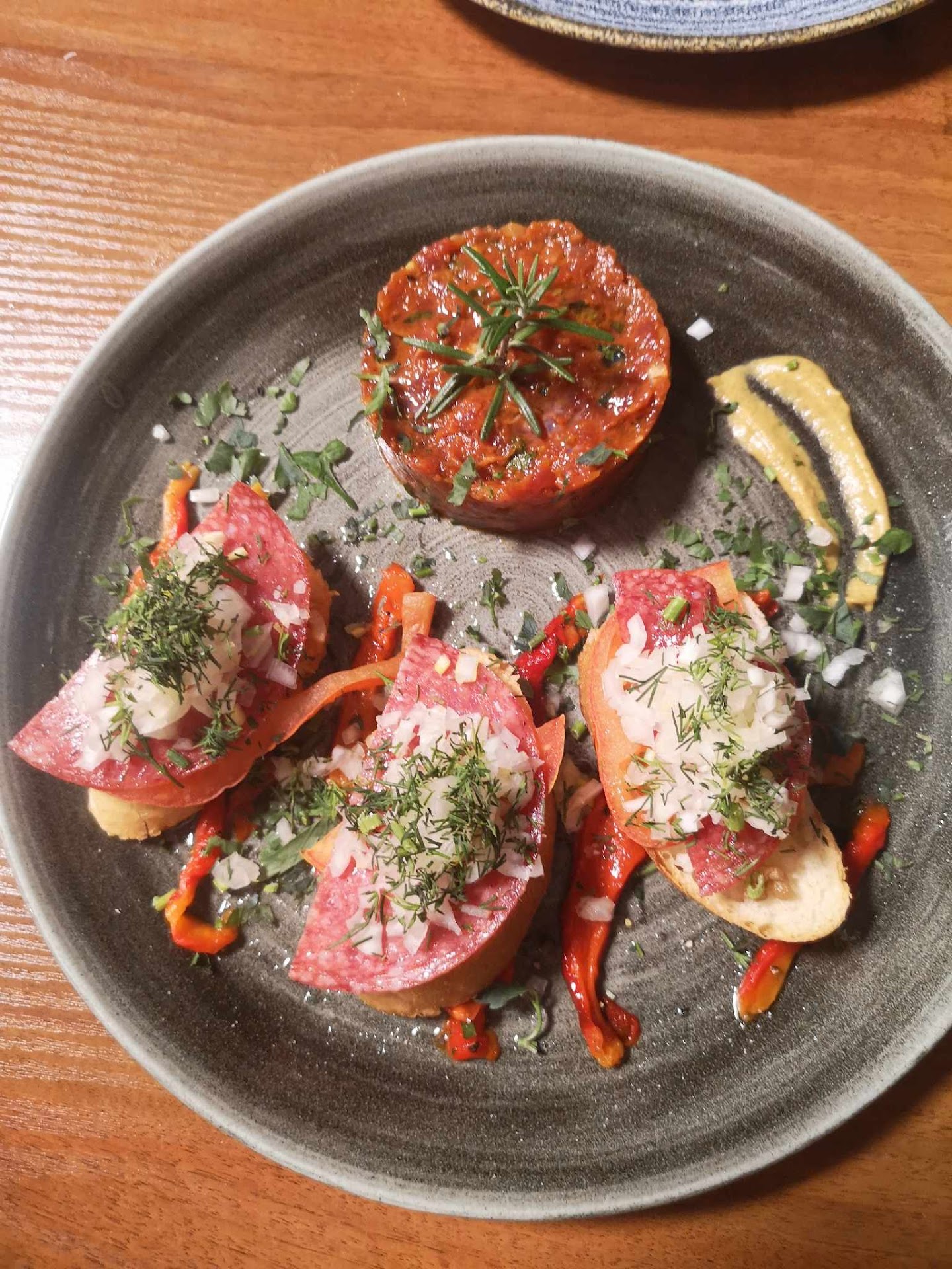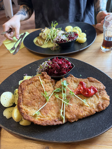 Płatność tylko gotówką! Zamówiliśmy tatar, placka po węgiersku, polędwiczki wieprzowe w sosie borowikowym z kluskami śląskimi i dwa drineczki. Łącznie wyszło nam 220zl. Byliśmy standardowo 18+ więc bez żadnych kolejek, lokal w zasadzie pusty - z trzy stoliki zajete :) Teraz tak: tatar Magdy - 3/5. Smakowo ok, cenowo jak to tatar, kiedyś po 25pln, teraz w każdej restauracji 45-60pln. Co do podania - ja jednak wolę mieć wszystko oddzielnie i zmieszać sobie samemu :) Jajka bodajże nie było? A musztardy małe mazniecie na talerzu - to też dziwne bo przydałoby się jej znacznie więcej. Do tego trzy małe grzanki z cebulą, koperkiem, pomidorem i salami - zrezygnowałbym zdecydowanie z salami (pierwszy raz z czymś takim się spotykam) dodał jedna grzankę więcej - gdy je się tatara we dwie osoby to łatwiej podzielić 4ry grzaneczki niżeli trzy na lebka. Jedliśmy zdecydowanie lepsze i tańsze tatary nawet u nas w Łodzi i mam wrażenie, że jednak większe objętościowo - albo po prostu gdzie indziej ilość dodatków sprawiała, że tatara po wymieszaniu było naprawdę dużo. Placek po węgiersku - 4/5. Porcja duża - dla jednej osoby zdecydowanie wystarczy. Smak jak sama nazwa mówi, zdecydowanie paprykowy, kilka kawałków mięsa - bodajże 4-5 i trzy placki. Ok ale w Karpaczu już jedliśmy smaczniejszy i większy oraz tańszy placek po węgiersku. Polędwiczki z kluskami śląskimi w sosie borowikowym - 4/5. Porcja dość duża chociaż mniejsza niżeli np placki. Zdecydowana przewaga borowika w smaku co zdecydowanie jest na +++. Drinki - czuć, że jest tam jakiś % więc prawilnie 5/5 :D W ogólnym rozrachunku niestety - 3/5. Spodziewałem się lepszego smaku i troszkę niższych cen oraz zdecydowanie lepszego tatara. Czy warto czekać w kolejce która jest tutaj codziennie? Nie, jak wszędzie - nie. Wystarczy przyjść ok 18tej i tutaj jak i w co drugiej knajpie w Karpaczu nie ma kolejek :) I co do płatności... Gotówka w sezonie zimowym (ferie)? Właściciele mogliby się polasic o terminal (rozumiem ten 0.5-1% od każdej transakcji ale warto - można wtedy zrezygnować z tego "salami" na grzankach do tatara jeżeli szukać oszczędności terminalowych ;) ) albo chociaż udostępnić jakiś numer telefonu ogolno-restauracyjny tylko dla szybkich przelewow blikiem na telefon. Wystrój? Dla mnie żaden więc mocne 2/5 tym bardziej, że naprawdę 21.02 po godzinie 18tej nikogo nie było i można było sobie...
