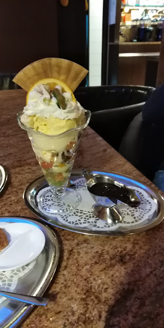 Read moreKawa smaczna. Fajna promocja-pralinka do kawy/herbaty w cenie. Natomiast doliczanie 5 zł za opcję roślinną do kawy w dzisiejszych czasach i posiadanie w tej cenie tylko jednej takiej opcji (migdałowej)-słabo. Wystrój trochę jak sprzed 20 lat, ale co kto lubi. Jest przytulnie więc w sumie nieźle. Lody w pucharku lodowym w momencie dostarczenia do stolika były już w wersji płynnej. No i obsługa-kupowałam pralinki 25 zł/100 g. Wybrałam 4 pralinki, bo pani mi powiedziała, że może mi spakować albo 2 albo 4 (pierwotnie chciałam tylko 3, ale no musiałam dobrać bo pani nie mogła mi spakować tylko 3). Po wyborze pani wzięła pralinki na bok do spakowania, nie zważyła ich (brałam pralinki na wagę) i jeszcze jak były w trakcie pakowania to już przyszła jaką metodą będzie płatność, podała mi terminal do zapłacenia kartą i dopiero w tym momencie dała mi paragon na którym była kwota. Jak potem spojrzałam zostałam policzona jak za zestaw pralinek-pewnie dlatego że były w kartoniku a nie w folii. Jednak nie widnieje nigdzie informacja o tym, nie zostałam też poinformowana o tym przez panią obsługującą mnie. Nie tak powinna wyglądać obsługa, poczułam się...
