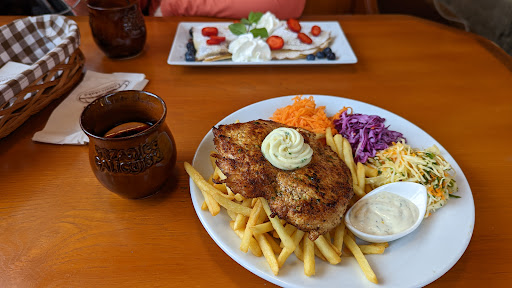Wonderful place with warm home atmosphere. Super tasty food and pretty big portions size along with affordable prices. Piers grillowana was wonderful with garlic butter on the top and tasty species. Frytki were similar to those in McDonald's that for me is a high standard for them. And also the dish was served with 3 kinds of vegetable salads. Also grzane wino is wonderful and served in quite authentic cups.