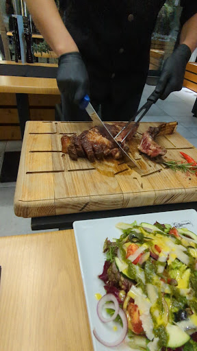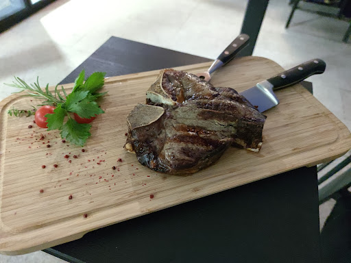 Read moreNice restaurant located at the 1st floor with a broad balcony overlooking city center and with a view on the mountains. The restaurant is focused on beef and offers a wide variety of different steaks. We ordered a dry aged porterhouse (t-bone) and it was delicious, one of if not the best steak I ever ate. As the dry aged steaks come in preset sizes, ours was around 800 gram, we shared it with two. The waiter advised us to take the stone plate heated which is heated up to 350 degrees, that was a great suggestion and added to the overall experience. On top of the great food we also found the service to be top-notch, our waiter properly explained us the different steak types as well how their dry aging works. The food arrived fast, we received an appraiser and the waiter regularly checked up on us. As we were seated outside we also received a blanket. Overall this was a top notch experience, and I dare say better then the top rated...