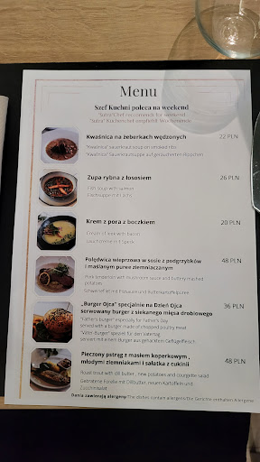 Ja niestety nie polecam. Byliśmy w restauracji w ostatni czwartek. Dojechaliśmy do Karpacza po 5h jazdy...zaraz obok ośrodka zauważyliśmy ciekawą restaurację. Mocno zmęczeni i dość głodni usiedliśmy na zewnątrz. Czekamy ok 20 minut, niestety nic się nie dzieje. Pani kelnerka kilka razy zagląda w naszą stronę. Jednak zero reakcji, nikt nie przyniósł karty. Dziwna sprawa, bo starsi Państwo, którzy przyszli sporo po nas otrzymali ją od razu. Z nieznanych nam powodów po chwili opuścili jednak lokal. Chcąc ułatwić pracę kelnerce, "przyjęliśmy" karty z pustego stolika. Wybraliśmy dania no i czekamy co dalej. Pani kalnerka wychodzi (obsługa ze środka również nas widziała) i udaje, że nas nie widzi... Obok siedzi mama z córką i postawa obsługi jest podobna. Mija ok 30/40 minut, nikt do nas nie podchodzi. Opuszczamy lokal...straciliśmy tylko czas. W ramach wyjaśnienia dodam, ze w lokalu nie bylo ogromnego ruchu (czwartek). Oczywiście mógłbym również zrozumieć opóźnienie czy inne kwestie, które utrudniają wydanie jedzenia. Nie mam z tym najmniejszego problemu, bo jak wiadomo różnie bywa. Jednak jednego zabrakło, zabrakło kontaktu z klientem. Wystarczyło podejść i wyjaśnić sytuację. Zmieniliśmy lokal, ale ani trochę nie żałowalismy. W innej restauracji kelnerka zobaczyła nas jeszcze przed wejściem, zaproponowała stolik i w momencie przyniosła karty. Tak to powinno wyglądać. 2 gwiazdki tylko za wystrój, bo jest bardzo fajny, reszty nie mieliśmy...