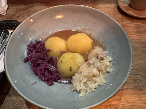 The place is pretty popular, there was a queue for ca. 10 minutes, when we arrived for lunch (when leaving, the queue was longer…). There is no wonder so many people visit this restaurant. Very nice interior, industrial climate fitting to Silesia, fantastic staff taking care for customers (really great to see young people working in very organized way with smile on faces), affordable prices and last but not least real Silesian cuisine. Food is stuffy, so watch out not to order to much. Soups are delicious, try also Braty (fried patatos with Polish becon, champignons, onion and cheese). We were a bit disappointed with vege Kulebele (Silesian patato dumpling stuffed with vegetables) and with dumplings with duck stiffing -...