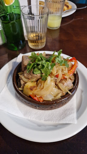Pozycja zdominowana przez cebulę, mięsa było co nieco, natomiast ziemniaków i papryki niewiele. Ziemniaki były twarde a sam posiłek bez smaku i ledwie ciepły. W połowie konsumpcji podeszła do nas kelnerka zapytać o wrażenia. Powiedziałem, że ziemniaki są twarde a danie nie jest ciepłe. Broniła go mówiąc, że nigdy nie wiadomo jaki ziemniak się trafi :) Ale to akurat nie mój problem.