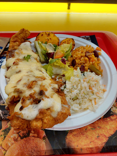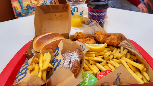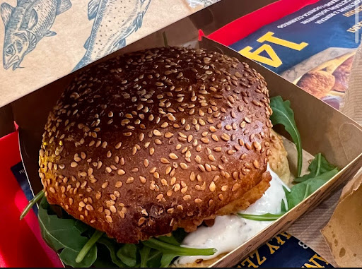 Read moreLokal w środku galerii Silesia City Center na dziale gastronomicznym. Sam lokal świecił pustkami w porównaniu do takiego np McDonalds ale z ciekawości skusiłem się na zestaw burger+frytki+napój za 25 zł. Miłym zaskoczeniem była kanapka która w środku zawierała świeża rybę, rukolę i autorski sos który idealnie wpasowywał się w całość. Frytki również zasługują na wyróżnienie. Dobrze wysolone, mięsiste i chrupiące ale miękkie w środku. Lemoniada gorzka, niesmaczna i tak jak w przypadku całkiem smacznego soku z mango -BARDZO mała ilość, do połowy kubka.