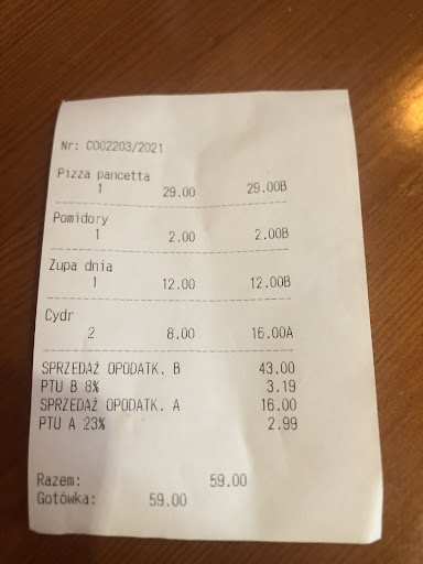 Read moreWhen I visited Katowice last month I was coming to this restaurant serveral times to eat. The restaurant looks very nice with an cozy interior. Also the food is very nice for a very good price! I especially loved the fresh tomato soup with mascarpone it's really delicious and reminded me of how my mother made it at home. I ate here different kind of things, and it's all nice. I really liked the spareribs with sauerkrout, the spareribs are really big, but the meat melts away on your tongue. And the sauerkrout is just how I liked it. I also eat some Pizza's here, those are very could. Only I order the pizza without gorgonzola because I don't like it for my personal taste. And last but not least I want to thank the waiter for his kindness, and also he makes very good lemonade, it's really refreshing and not to sweet. And he's also in for a good talk. On the last day there was a girl that's also very kind! I hope to come back soon to Katowice and that I can eat again at this...