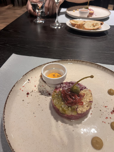 Read moreNo niestety, ale sporo jeszcze do poprawy żeby było 5 gwiazdek. Gdyby to była moja pierwsza restauracja aspirująca na ekskluzywną pewnie byłby zachwyt, ale wiem że jest mnóstwo restauracji że gdzie płacąc tak samo wysoki rachunek można wyjść z zupełnie innym wrażeniem i poczuciem kulinarnego szczęści :) Przystawki krewetki i kalmary w tempurze pyszne - mój smak. Jako dodatek kilka listków sałaty i średnie przysmażone pieczywo. Tatar ok, trochę za dużo dodatków a za mało smaku samego mięsa - jadłam już lepsze. Danie główne polędwica argentyńska - pyszna mięciutka, stopień wysmażenia idealny. No i homar - dla niego tam pojechaliśmy. Nie wiem czy zrobiony zgodnie ze sztuką bo jadłam pierwszy raz, ale mięso homara pyszne i faktycznie warto spróbować. Ale znowu wracam do kwestii dodatków. Tu kompletnie leżą. Do tatara kilka odsmażonych ziemniaczków i mieszanka sałat z ...biedro? A do homara mnóstwo lekko czerstwych kromek i rukola?...zabrakło mi duuuużo maślanego sosiku z lekko czosnkową nutą, w którym można by te kromki maczać po zjedzeniu mięska i to dopiero byłaby poezja smaku i rozkosz podniebienia. No i na koniec deser, który powinien być petarda bo przecież deser zapamiętuje się najlepiej. Niestety całkowita porażka, kokosowa panncota mdła i ...nie kokosowa, a czekoladowy mus z tapioką niezjadliwy - twarda skorupka z karmelu, mus czekoladowy, w którym nie czuć czekolady. Przypominało bardziej jeden z tych zdrowych deserów, które próbujemy wmówić sobie że są pyszne - coś jak czipsy z jarmużu :) . Plus dla kelnera że odliczył od rachunku niezjadliwy deser. Podsumowując - nie ma satysfakcji i są jeszcze duże braki. Samo mięso z polędwicy i homara pyszne ale to za mało na 5 gwiazdek. Raczej nie mam ochoty na...