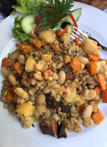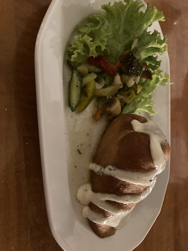 The food was very tasty and fresh, we had the dumpling which was different from the general dumpling you might use to, it was fried and has a soft filling inside. The matzah ball soup was so flavourful. We further ordered the carp with mushrooms and the beef stake that is sevred with a sauce, along with latkes. Everything was very well prepared. For desert you could try the kanafeh.