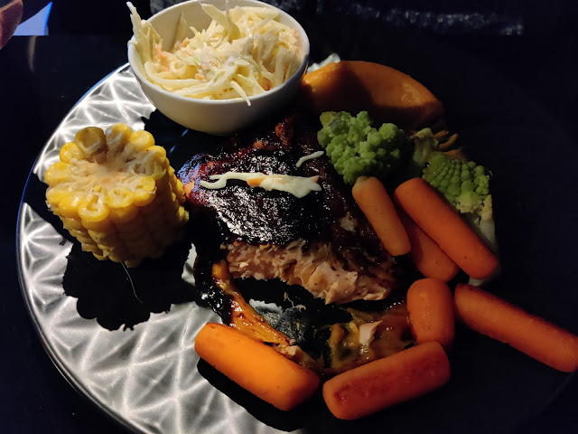 My husband enjoyed his salmon (but sweet potato purée that came with it -...