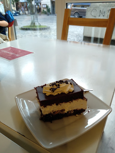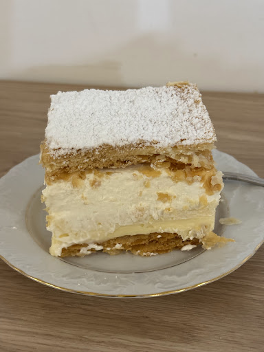 Read moreOd lat, regularnie przychodzę tutaj na kremówkę, odkąd dowiedziałam się, że dostała nagrodę w kategorii najlepszej kremówki w Małopolsce. Jest kremówką gigantem, kosztuje 7 zł. Ciasto francuskie po uderzeniu widelczykiem cudownie pęka. Jest to połączenie świeżutkiego kremu i pysznej śmietany. Od ponad 20 lat nie słodzę herbat, w domu używam jedynie stewię, ksylitol, więc niemal zawsze dla mnie ciasta są przesłodzone. Od razu też wyczuwam, czy przesadzono z cukrem. Ta kremówka jest królewskim ciastem. Pachnie i smakuje. Nie jadłam nigdzie lepszej kremówki, a byłam też na tych wadowickich. Polecam tutaj też wózetkę z bitą śmietaną, kosztuje 5 zł. To idealna wózetka, ze świeżutką śmietaną. Doskonałe proporcje ciasta i śmietany, ogromny plus za posypanie jej startą czekoladą. Warto tu kupić rogale drożdżowe (5 zł), zarówno te z czekoladą i marmoladą. Są duże, wypełnienie ładnie rozkłada się i jest go naprawdę dużo. Jadłam też torcik śmietankowy (6 zł), ale nie przypadł mi do gustu. Jednak zbyt dużo jest w nim śmietany i wydała mi się ubita na bardziej twardą niż ta w wózetce z bitą śmietaną. Przez to jest mniej smaczna. Nie polecam też tiramisu, które jest zbyt mało kawowe. Lokal jest przestronny, jest tu dużo stolików i dwa pomieszczenia. Można usiąść przy podwójnym stoliku lub większym. Można tu wpaść dużą grupą. Ja lubię siedzieć w witrynie wychodzącej na Karmelicką. Łatwo tu dojechać. Można płacić i kartą i gotówką. Ubikacja jest na zewnątrz, nigdy z tego powodu z niej nie korzystałam. W wejściu do lokalu na stoliku stoi płyn do dezynfekcji. Po odejściu od stolika odwraca się kartkę z informacją, że stolik wymaga...