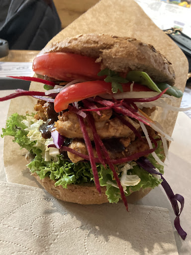 Read moreIt was very very hot inside but I was hungry so I decided to go in anyways. The service staff didn’t say much but maybe that was just because of language barriers. I got the gyros burger which didn’t take long to be made. In my opinion, the soy meat replacement has nothing to do with gyros and just wasn’t very flavorful at all. This would definitely still be more towards maybe 3 than 1 star though. Why one star then? At first I did not know why my burger tasted very weird. But picking it a bit apart and eating it more separated I quickly realized that it was the spicy sauce on it which simply tasted spoiled, as if it had turned over. The burger was edible after I did my best to completely scrape of the rotten sauce. One star is not only for serving rotten food though but for me telling them about this and then not reacting at all. Furthermore, they offered the same sauce to customers after me. This is truly horrendous and simply dangerous. I hope they will immediately fix their food hygiene policy, otherwise I don’t see why they should be allowed...
