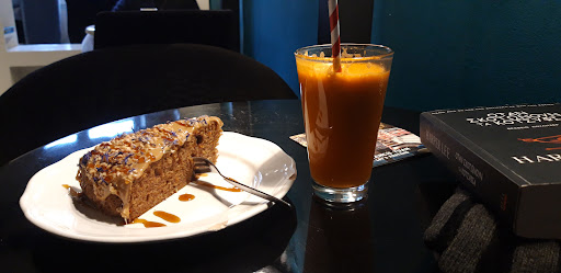 Read moreThe place to be...specially if you speak polish and you love books. Unfortunately doesn't have books in English though it's nice to be there and read your own book. Excellent atmosphere, warm and cosy place. You can find except books also hot and cold beverages plus options of cakes, salads and sandwiches. Prices: 12 - 14 pln for juice and 15 pln for cake Quantity&quality: juice probably 250 ml and cake average size but super delicious Service: you order in the bar but they bring you the order on your table. I love to order a customized juice different of what they have in the menu and see the surprise in their faces. I believe its really hard for people in Poland to accept that someone wants to customize...